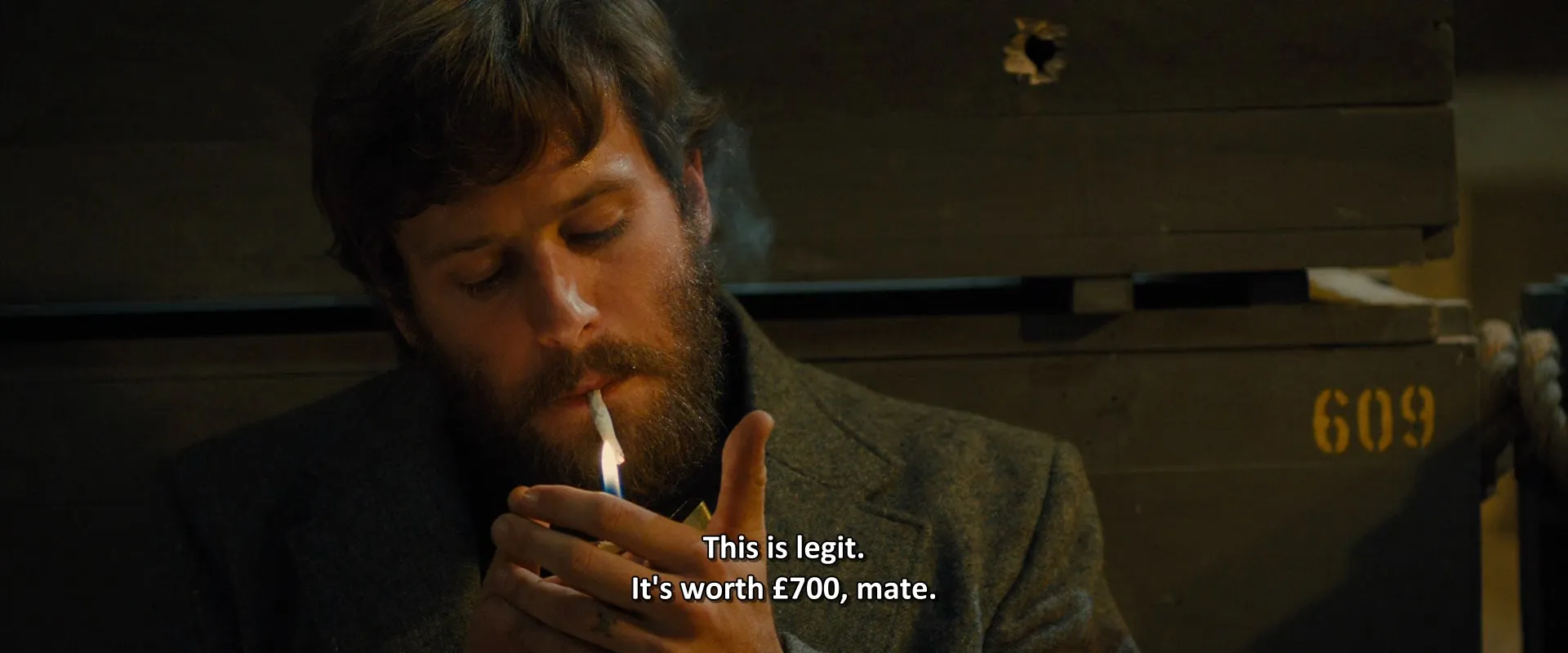 Cast: Brie Larson as Justine, Sharlto Copley as Vernon, Armie Hammer as Ord, Cillian Murphy as Chris, Jack Reynor as Harry, Sam Riley as Stevo, Michael Smiley as Frank, Noah Taylor as Gordon, Babou Ceesay as Martin, Enzo Cilenti as Bernie, Patrick Bergin as Howie, Tom Davis as Leary, Mark Monero as Jimmy, Sara Dee as Telephone Sales (voice)